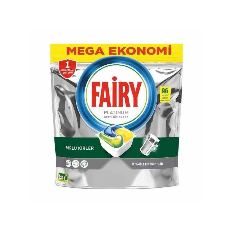 قرص ماشین ظرفشویی فیری پلاتینیوم مدل PLATINUM بسته 96 عددی با فرمولاسیون قوی و حاوی نمک و جلادهنده، بهترین محصول برای شستشوی بی نقص ظروف و محافظت از کارایی و عمر مفید ماشین ظرفشویی می باشد. این محصول با قدرت شویندگی قدرتمند و محتویات کمک شستشو، بدون باقی گذاشتن لکه و چربی ظروف را به طور کامل تمیز و درخشان می کند و استفاده بسیار راحت و آسانی دارد.محصول علاوه بر پاکسازی کامل ظروف، حاوی جلادهنده است و باعث براق و درخشان شدن ظروف شیشه ای و بلورین و مانع از خش افتادن به آن ها می شود. همچنین با چربی زدایی فیلتر و قسمت های پنهان ماشین ظرفشویی باعث افزایش عملکرد دستگاه و کاهش هزینه تعمیرات آن می گردد.
