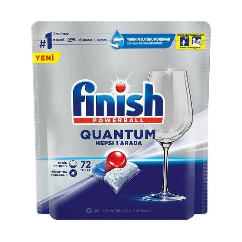 قرص ماشین ظرفشویی فینیش Quantum بسته 72 عددی، قدرت چربی زدایی فوق العاده بالایی دارد و در دماهای پایین نیز به راحتی در آب حل می شود و با فناوری جدید خود، قدرت تمیز کنندگی 14 برابر بیشتر از قرص های معمولی دارد و سخت ترین کثیفی ها را نیز پاک می کند. فناوری 3 گانه این محصول شامل ژل، پودر و توپ قدرتمند است. ترکیب شدن همزمان ژل و پودر، قدرت لکه بری بیشتری ایجاد کرده و مواد اضافی را از روی ظروف پاک می کند، همچنین به دلیل داشتن فولاد ضد زنگ، از ظروف شیشه ای نظیر لیوان و بشقاب، محافظت کرده و مانع از ایجاد خط و خش و کدر شدن آن ها می شود.به دلیل فرمولاسیون غلیظ و قدرتمند این قرص، در هر بار شستشوی ظروف بوسیله ماشین ظرفشویی، 57 لیتر آب صرفه جویی می شود. این قرص دارای نمک ظرفشویی و جلادهنده ظروف است و با این ویژگی از خرید و استفاده از نمک و جلادهنده بصورت جداگانه بی نیاز شده و از لحاظ اقتصادی انتخابی مقرون به صرفه خواهید داشت.