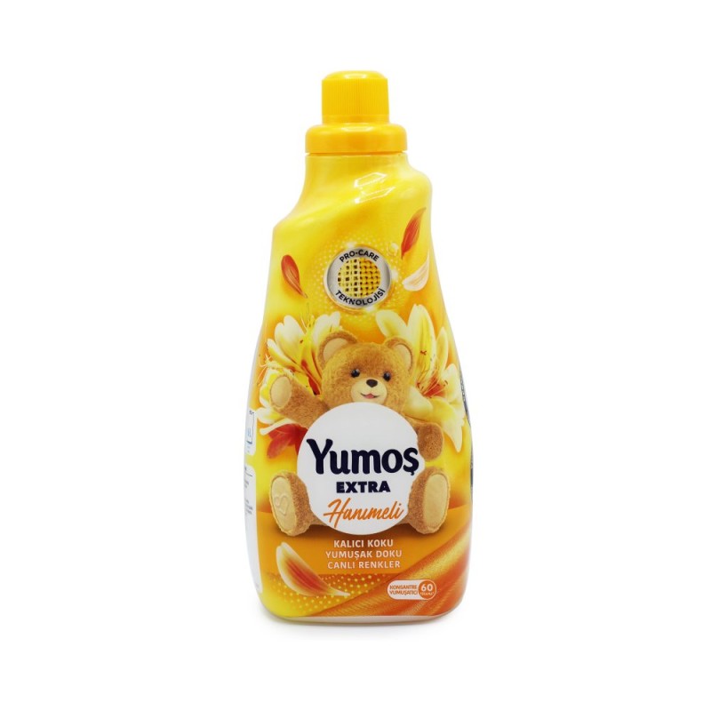 این نرم کننده لباس حاوی رایحه گل یاس است و پس از شستشو لباس ها رایحه شگفت انگیز گل های یاسی به لباس ها می بخشد و این رایحه دل انگیز تا چندین روز همراه لباس ها باقی می ماند. Yumos با افزایش نرمی پارچه و لباس، اتو کشی آن ها را آسان تر می کند. فرمولاسیون غلیظ آن برای 60 بار شستشوی لباس کافی است؛ 1.5 لیتر از آن با 6 لیتر از سایر محصولات برابری کرده و از این لحاظ انتخابی مقرون به صرفه و اقتصادی محسوب می شود.