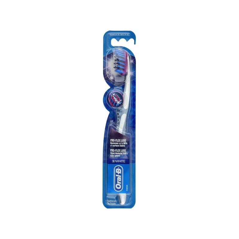 مسواک اورال بی مدل 3D White Pro-Flex با برس متوسط محصولی بی نظیر از کشور ایرلند بوده و با جرم ها و پلاک های دندان به طور قوی مبارزه می کند. این محصول دارای دو سری متحرک و انعطاف پذیر روی برس خود می باشد که کار تمیز کردن دندان ها را بدون آسیب رسیدن به لثه ها انجام می دهد. همچنین دارای پاک کن استیل در وسط برس می باشد که به صورت ملایم و در عرض 14 روز 90درصد لکه ها را از بین می برد.این محصول با برس متوسط باعث تمیزی عمیق دندان ها شده و مانع آسیب به لثه ها و خونریزی آنها می شود. این محصول با داشتن دسته ارگونومیک مانع لیز خوردن آن در هنگام استفاده در دست می شود. با الیاف با کیفیت خود بدون آسیب زدن به مینای دندان ها، پلاک و جرم را از سطح دندان ها پاک می کند.محصول با طراحی سری انعطاف پذیر و متحرک در دو طرف آن، به راحتی در میان دندان ها حرکت کرده و یک لبخند خیره کننده برای شما به ارمغان خواهد آورد و تا 90 درصد و در عرض 2 هفته لکه های روی سطح دندانها را از بین می برد. پرزهای قسمت بالایی برس با حالت خمشی و ویژگی power tip با سرسخت ترین جرم ها مبارزه می کند و برای تمیز کردن قسمت های انحنای دندان ها و بین لثه ها مناسب است.